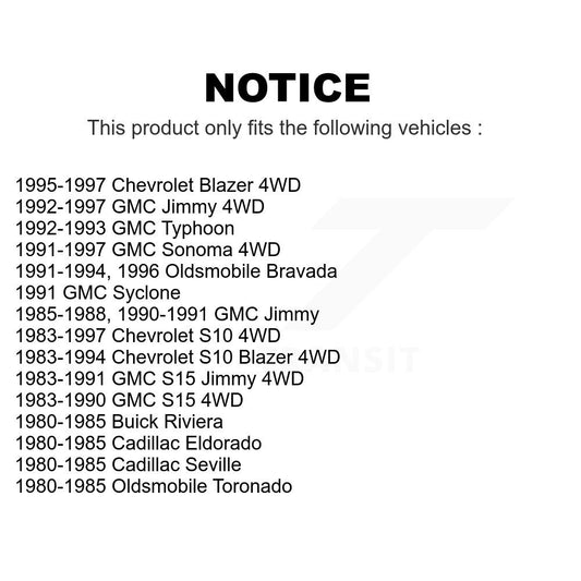 [Avant] Kit de Disque de frein pour Chevrolet S10 GMC Blazer Sonoma Jimmy S15 Cadillac Eldorado Oldsmobile Buick Riviera Seville Bravada Toronado Typhoon Syclone K8-100055