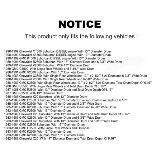 [Arrière] Kit de Tambour de frein pour Chevrolet K1500 Suburban GMC C1500 C20 C3500 K2500 K3500 V2500 C2500 K20 R2500 G3500 P2500 K8N-100299