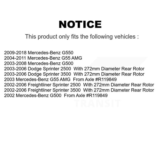[Arrière] Kit de Disque de frein pour Sprinter 2500 Freightliner Dodge Mercedes-Benz G550 3500 G500 G55 AMG K8-100789