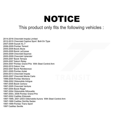 [Inférieur avant] Kit de Rotule de suspension pour Chevrolet Impala Buick Pontiac Grand Prix Saturn Vue Century Equinox LaCrosse Rendezvous Monte Carlo Venture Uplander Oldsmobile Limited Regal Captiva KTR-101186