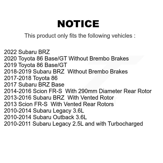 [Arrière] Kit de disque (revêtu) de frein pour Subaru Outback Legacy Scion FR-S BRZ Toyota 86 GR86 KG-100628