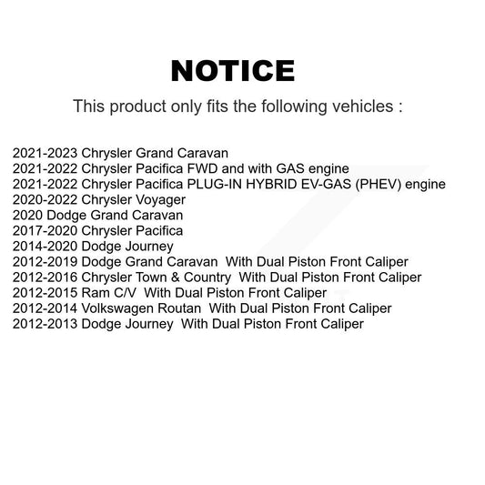 [Avant] Kit de Disque de frein pour Dodge Grand Caravan Chrysler Journey Town & Country Pacifica Ram C/V Volkswagen Routan Voyager K8-100250