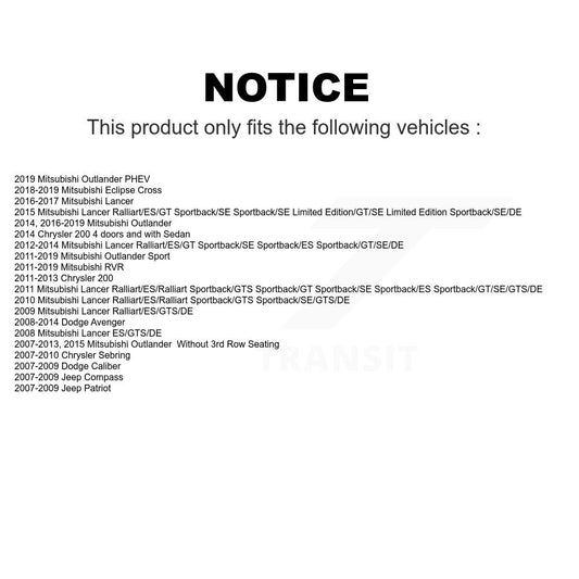 [Arrière] Kit de biellette de barre stabilisatrice de suspension pour Mitsubishi Dodge Chrysler Avenger 200 Outlander Sport Caliber Sebring Lancer Jeep Patriot Compass Eclipse Cross RVR PHEV K72-100350