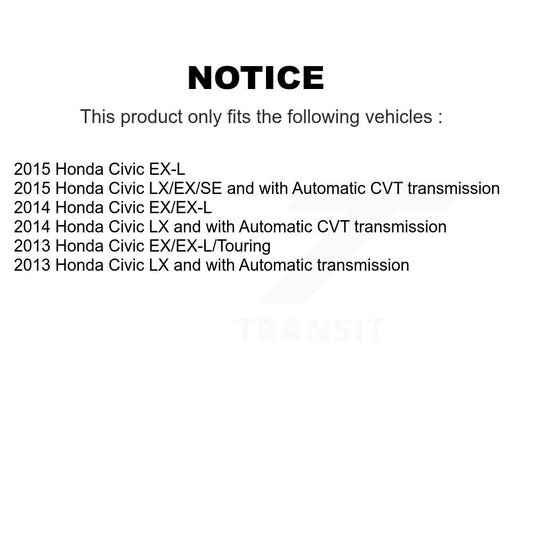 Ces pièces sont compatibles avec 2015 Honda Civic.
