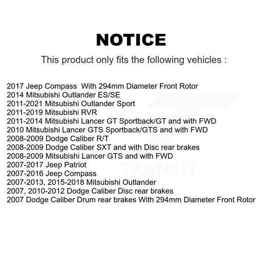 [Avant] Kit de disque (revêtu) et plaquette (semi-métallique) de frein pour Jeep Dodge Patriot Mitsubishi Chrysler Compass Avenger 200 Caliber Outlander Sport Sebring Lancer RVR KGS-100157