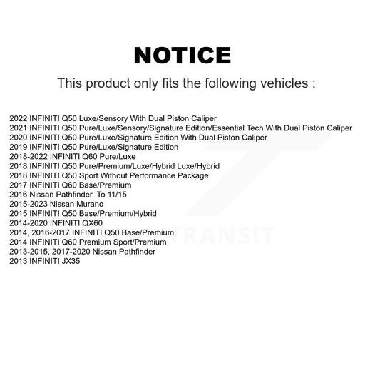 [Avant] Kit de Disque de frein pour Nissan INFINITI Pathfinder Murano QX60 Q50 JX35 QX50 Q60 Z K8-100538