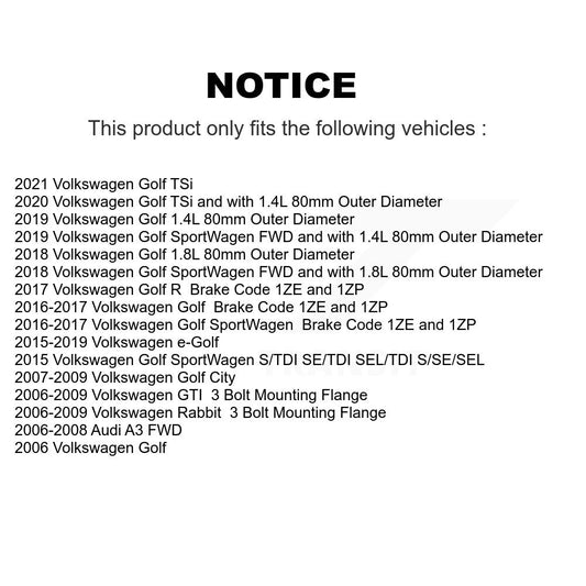 [Arrière] Kit d'ensemble roulement de roue et moyeu pour Volkswagen Jetta GTI Audi A3 Beetle Golf Rabbit SportWagen e-Golf Sportback e-tron R City K70-100671