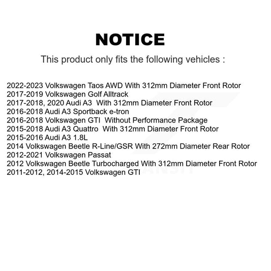[Avant + Arrière] Kit de Disque de frein pour Volkswagen Passat GTI Audi A3 Beetle Quattro Golf Alltrack Sportback e-tron Taos K8-101424
