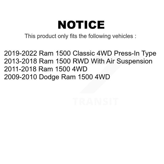 [Avant] Kit d'ensemble de jambe de suspension avec ressort hélicoïdal pour Ram 1500 Dodge Classic Excludes Rear Wheel Drive TRX Models avec Air Ride/Lift Kit Suspension 4WD K78A-100051