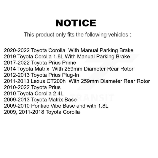 [Arrière] Kit de Disque de frein pour Toyota Corolla Prius Matrix Prime Pontiac Vibe Lexus CT200h Plug-In AWD-e K8-100603