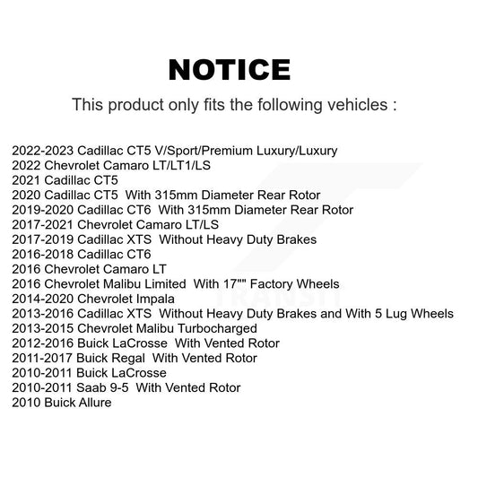 [Arrière] Kit de Disque de frein pour Chevrolet Malibu Buick Impala LaCrosse Camaro Cadillac Regal XTS Limited CT6 Saab 9-5 CT5 Allure K8-100614