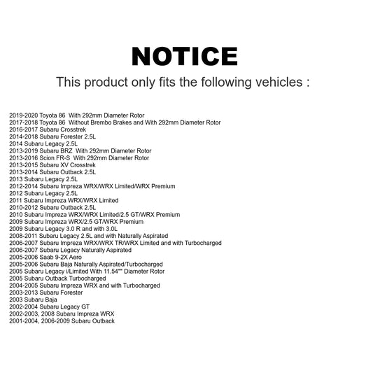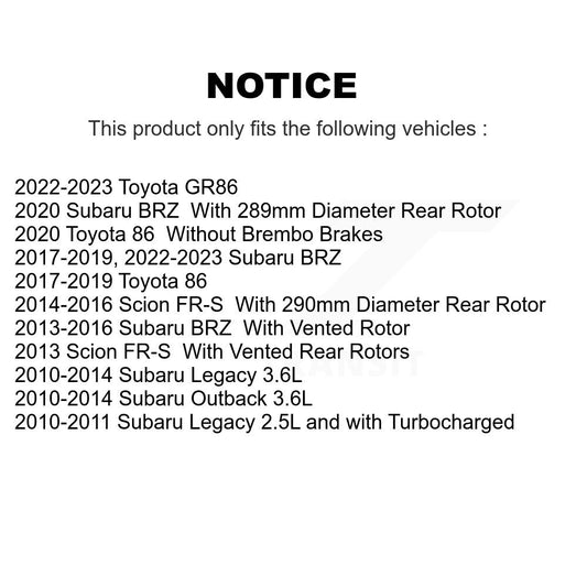 [Arrière] Kit de Disque de frein pour Subaru Outback Legacy Scion FR-S BRZ Toyota 86 GR86 K8-100904
