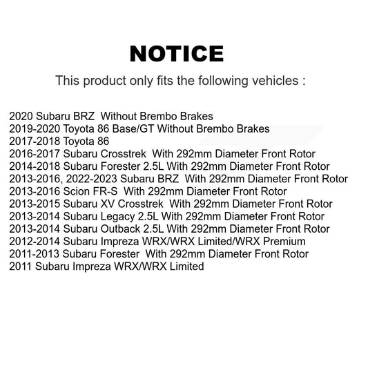[Avant] Kit de Disque et plaquette (semi-métallique) de frein pour Subaru Forester Impreza Outback XV Crosstrek Legacy Scion FR-S BRZ Toyota 86 K8F-102659