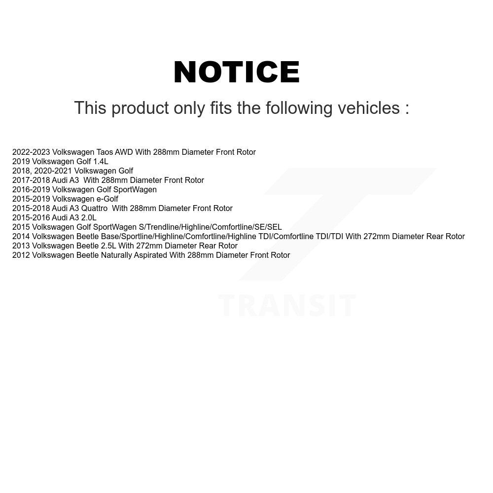 [Avant + Arrière] Kit de Disque de frein pour Volkswagen Audi Beetle A3 Golf SportWagen Quattro e-Golf Taos K8-101443