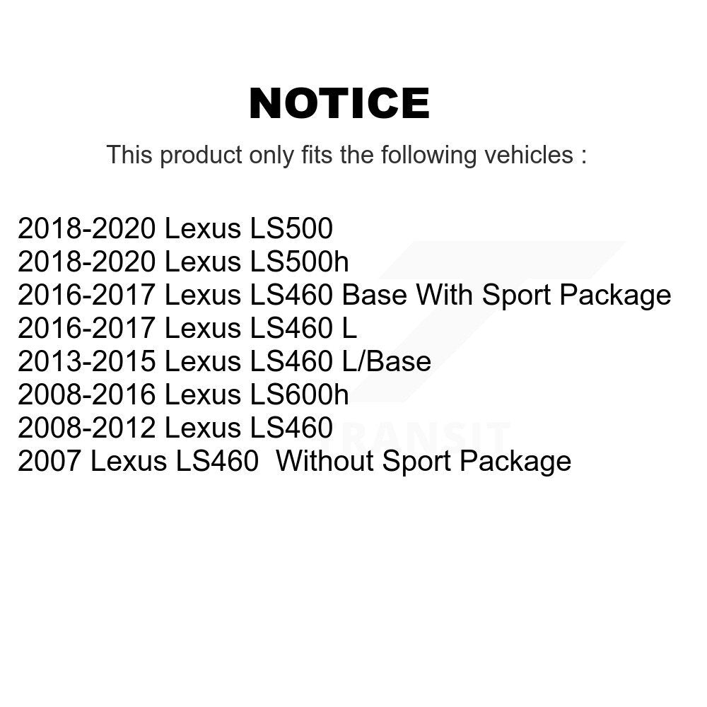 | 2008 | Lexus | LS460 | Tous | N/A | Avant et Arrière |